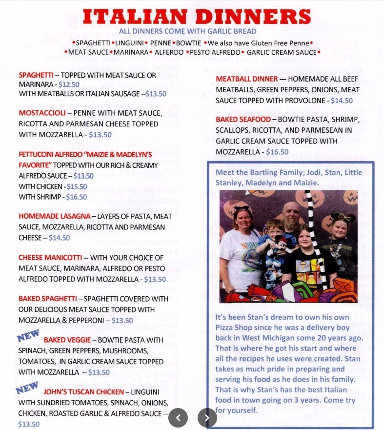 I've had been hearing about Stans for awhile now, finally decided to give it a try tonight, and my family of 4 was NOT disappointed. You can tell how much love is poured into their food. We all got different pasta dishes to try and it was a 15 outta 10! Definitely got a repeat customer. Servings and prices were awesome. Loved the service. Delicious 😋