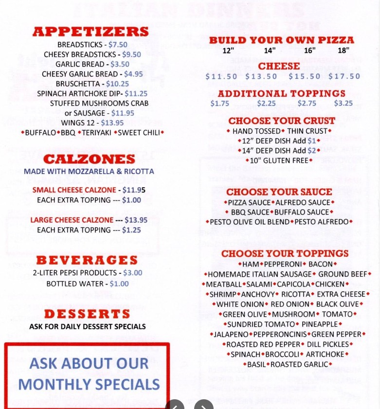 Ordered a 16inch, pepperoni, sausage, mushrooms, and black olives. Looked fantastic, but the dough was rubbery, and the sauce’s tasted was off. We got wings from down the street, we should have ordered pizza from them too.